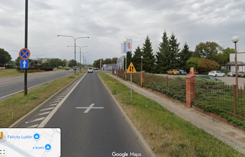 To miejsce pokazuje bardzo ważny problem, który nie wynika z braku wiedzy, ale z błędnej interpretacji oznakowania. W okolicach Felicity, obok Carrefoura, kierowcy przejeżdżają z odcinka drogi jednokierunkowej na fragment dwukierunkowy. Jeśli jadą „na pamięć”, mogą nie zauważyć zmiany organizacji ruchu.